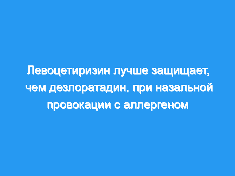 Мы попытались сравнить левоцетиризин и дезлоратадин в тесте на назальную провокацию (NPT) с пыльцой травы. Двадцать четыре добровольца с аллергией на пыльцу трав и ринитом в анамнезе были включены в двойное слепое плацебо-контролируемое перекрестное исследование. Три НПТ были выполнены методом увеличения дозы в межсезонный период через 4 часа после однократного приема левоцетиризина (5 мг), дезлоратадина (5 мг) или плацебо.