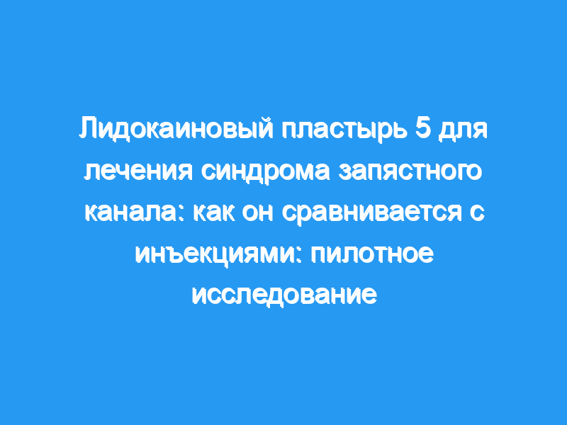 Это пилотное исследование продемонстрировало, что лидокаиновый пластырь 5% эффективен в уменьшении боли, связанной с CTS, и хорошо переносится. Лидокаиновый пластырь 5% может предложить пациентам с CTS эффективное, неинвазивное лечение для лечения их симптомов. Необходимы дальнейшие контролируемые испытания.