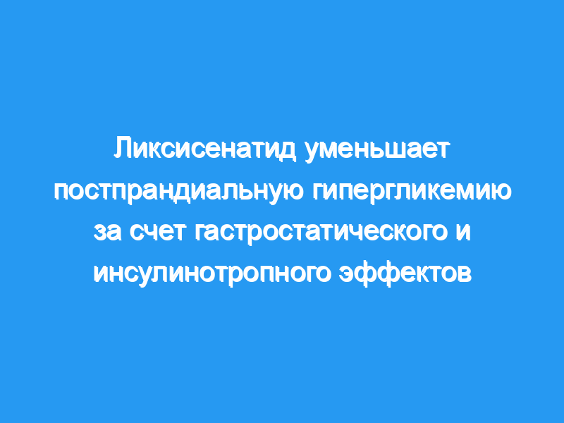 Ликсисенатид — это агонист рецепторов глюкагоноподобного пептида-1 короткого действия, принимаемый один раз в день во время еды. Его основной противодиабетический эффект заключается в задержке опорожнения желудка для контроля уровня глюкозы в плазме крови после приема пищи. Была исследована зависимость «доза-реакция» комплексного инсулинотропного и гастростатического ответа на ликсисенатид у здоровых добровольцев после приема стандартизированной жидкой пищи. Двадцать здоровых испытуемых получали ацетаминофен в дозе 1000 мг со стандартной жидкой пищей через 60 мин после однократной подкожной инъекции плацебо или ликсисенатида в дозе 2,5, 5, 10 или 20 мкг в рандомизированном порядке с интервалом от 2 до 7 дней. Фармакокинетика ацетаминофена служила суррогатом для оценки скорости опорожнения желудка. Уровень глюкозы в плазме крови после приема пищи, инсулина, С-пептида и глюкагона оценивали в течение 5 ч после теста на прием пищи, а фармакокинетику ликсисенатида определяли в течение 6 ч.