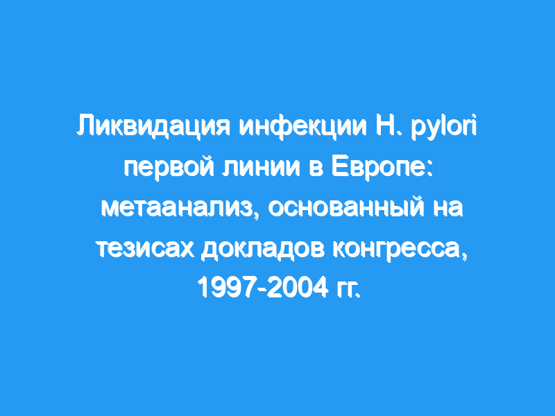 Тройная терапия на основе PPI/RBC достигла сопоставимых результатов с результатами метаанализов. Антагонисты H(2)-рецепторов и двойные комбинации на основе PPI были менее эффективными. Тройной и четырехкратный режимы были одинаково эффективны. Схемы, содержащие кларитромицин + амоксициллин или нитроимидазол, были более эффективными, чем комбинации амоксициллин + нитроимидазол. Высококачественные тезисы докладов конгресса представляют собой ценный источник данных, пригодный для метааналитической обработки.