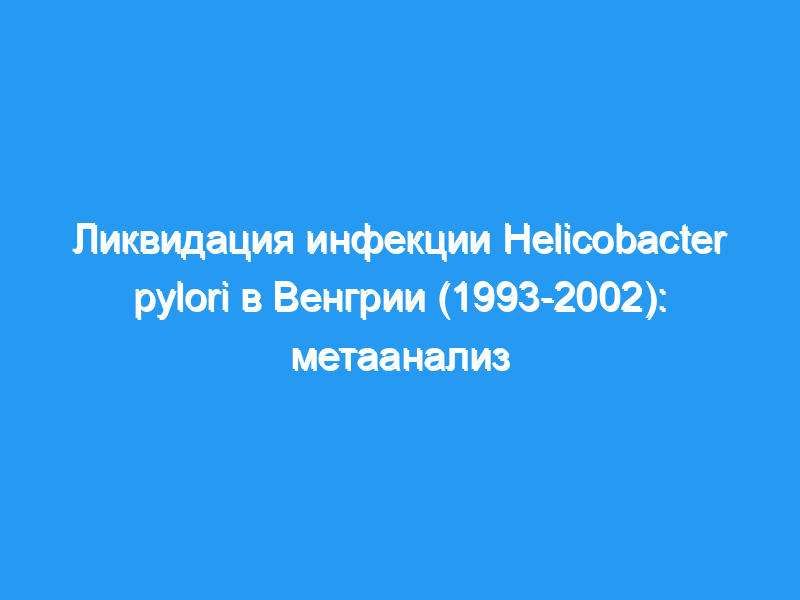 Метаанализ является полезным инструментом для получения достоверных данных в доказательной медицине. Руководящие принципы искоренения были предложены в I. Маастрихтском консенсусе (1996), который был изменен в 2000 году. Цель исследования: Предметом настоящей статьи является метаанализ исследований по эрадикации, проведенных в Венгрии в период 1993-2002 гг.