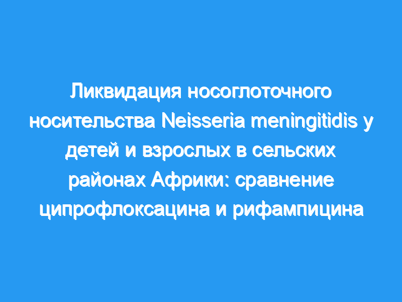 В Малау было проведено рандомизированное сравнительное исследование рифампицина и ципрофлоксацина для устранения носоглоточного носительства менингококков.