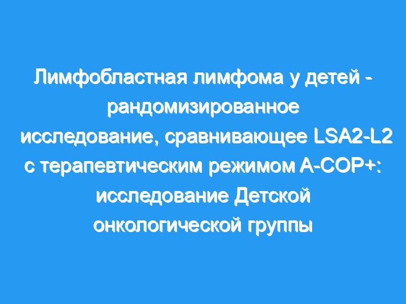 С мая 1979 по март 1983 года 76 обследованных пациентов с лимфобластной лимфомой (LBL) прошли лечение у членов Группы детской онкологии (POG). Сорок шесть детей, получавших лечение по схеме A-COP+ из шести препаратов (адриамицин [доксорубицин, Adria Laboratories, Колумбус, Огайо], винкристин, преднизолон, циклофосфамид, метотрексат и гидрокортизон), сравнивались в проспективном рандомизированном исследовании с 30 пациентами, получавшими модифицированный препарат LSA2-L2 из десяти препаратов (циклосфосфамид, винкристин, метотрексат, дауномицин [даунорубицин церубидин, Wyeth Laboratories, Филадельфия], преднизон, цитарабин, тиогуанин, аспарагиназа, гидроксимочевина и кармустин) режим.