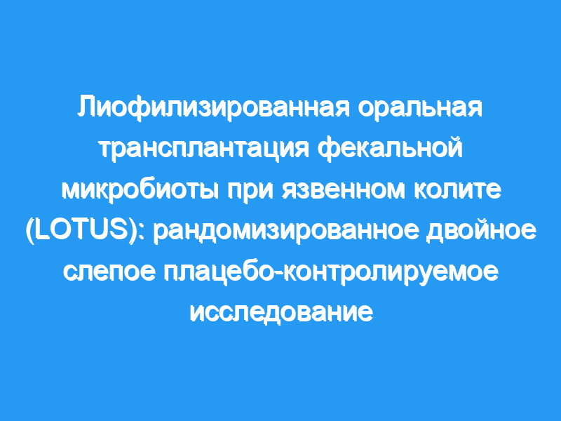 В двух центрах Австралии было проведено двойное слепое рандомизированное плацебо-контролируемое исследование. Подходящие пациенты были в возрасте 18-75 лет с активным язвенным колитом (определяемым как клинический и эндоскопический активный язвенный колит, с общим баллом по шкале Майо 4-10 и эндоскопическим субшкором по шкале Майо ≥1). После 2 недель приема амоксициллина, метронидазола и доксициклина пациенты были рандомизированы в соотношении 1:1 для приема либо пероральных лиофилизированных капсул FMT, либо плацебо в течение 8 недель, используя заранее определенный сгенерированный компьютером список рандомизации с измененным размером блока 8. Первичным исходом была клиническая ремиссия без применения кортикостероидов с эндоскопической ремиссией или ответом (общий балл по шкале Майо ≤2, все подшкалы ≤1 и снижение на ≥1 балл в эндоскопической подшкале) на 8 неделе. На 8-й неделе участники, ответившие на FMT, были случайным образом распределены (в соотношении 1:1, размер блока 8) для продолжения или отмены FMT еще на 48 недель. Анализы проводились методом модифицированного намерения к лечению, включая всех пациентов, получивших по крайней мере одну исследуемую дозу. Это испытание зарегистрировано в Австралийско-Новозеландском реестре испытаний, номер ACTRN 12619000611123, это окончательный отчет о испытании. Результаты: В период с 20 мая 2019 года по 24 марта 2020 года 35 пациентов были рандомизированы: 15 для получения FMT и 20 для получения плацебо. Набор был прекращен досрочно из-за пандемии COVID-19. На 8-й неделе у восьми (53%) из 15 пациентов в группе FMT была клиническая ремиссия без кортикостероидов с эндоскопической ремиссией или ответом, как и у трех (15%) из 20 пациентов в группе плацебо (разница 38·3%, 95% ДИ 8·6-68·0 , р=0·027, отношение шансов 5·0, 95% ДИ 1·8-14·1 ). Нежелательные явления произошли у 10 (67%) пациентов в группе FMT и у 17 (85%) пациентов в группе плацебо в течение 8-недельного периода индукции и, как правило, были легкими и самоограничивающимися желудочно-кишечными жалобами. Серьезные побочные эффекты включали обострение язвенного колита (два в группе FMT, один в группе плацебо) и перректальное кровотечение (одно в группе плацебо). Десять пациентов в группе FMT, которые достигли клинического или эндоскопического ответа, вошли в фазу поддержания и были рандомизированы для продолжения открытой FMT (n=4) или отмены терапии (n=6). Все четыре (100%) пациента, которые продолжали ФМТ, находились в клинической, эндоскопической и гистологической ремиссии на 56-й неделе по сравнению ни с одним из пациентов, у которых была отменена ФМТ. Интерпретация: Антибиотики с последующим пероральным введением FMT были связаны с индукцией ремиссии у пациентов с активным язвенным колитом. Продолжающаяся ФМТ хорошо переносилась и, по-видимому, демонстрировала клиническую, эндоскопическую и гистологическую эффективность. Пероральная ФМТ может быть многообещающим и осуществимым вариантом лечения пациентов с язвенным колитом. Финансирование: Фонд Клиники Святого Винсента, Гастроэнтерологическое общество Австралии, Gutsy Group.