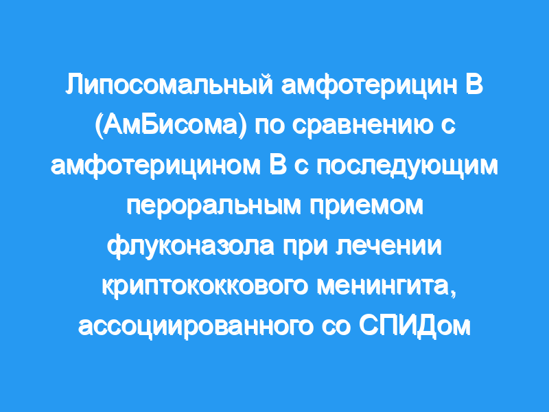 Начальная терапия дезоксихолатом амфотерицина В и поддерживающая терапия флуконазолом являются методом выбора при лечении криптококкового менингита, ассоциированного со СПИДом. Однако введение амфотерицина В связано со значительной токсичностью. Потенциальной стратегией снижения токсичности и увеличения терапевтического индекса амфотерицина В является использование липидных составов этого лекарственного средства. Дизайн и методы: ВИЧ-инфицированные пациенты с криптококковым менингитом были рандомизированы для лечения либо липосомальным амфотерицином В (амбисом) в дозе 4 мг/кг ежедневно, либо стандартным амфотерицином В в дозе 0,7 мг/кг ежедневно в течение 3 недель, каждый из которых затем принимал флуконазол в дозе 400 мг ежедневно в течение 7 недель. В течение первых 3 недель клиническую эффективность оценивали ежедневно. Микологический ответ в первую очередь оценивали с помощью посева спинномозговой жидкости (ликвора) на 7, 14, 21 и 70-й дни.