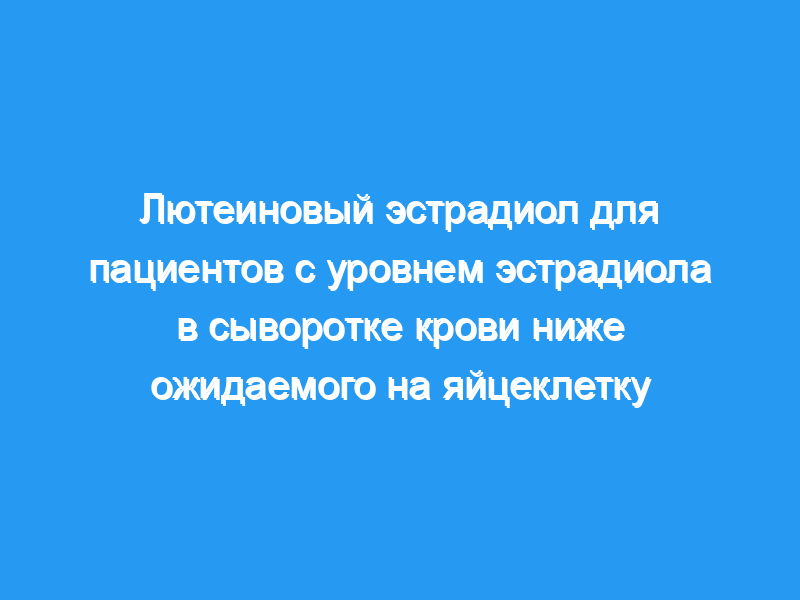 Мы оценивали исходы беременности у пациенток, у которых было отношение уровня Е2 в сыворотке крови на день ХГЧ к количеству извлеченных яйцеклеток. (соотношение эстрадиол/ ооцит — EOR) уровни <, 100 пг/мл, поддерживая их дополнительным эстрадиолом во время лютеиновой фазы.