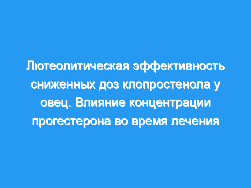 Семидесяти шести овцам давали 7,5, 12,5, 25 или 50 мкг клопростенола на 6-й или 9-й день после течки, чтобы сравнить лютеолитическую эффективность аналога PGF2a на каждой стадии и оценить, влияют ли концентрации прогестерона во время лечения на такую эффективность.