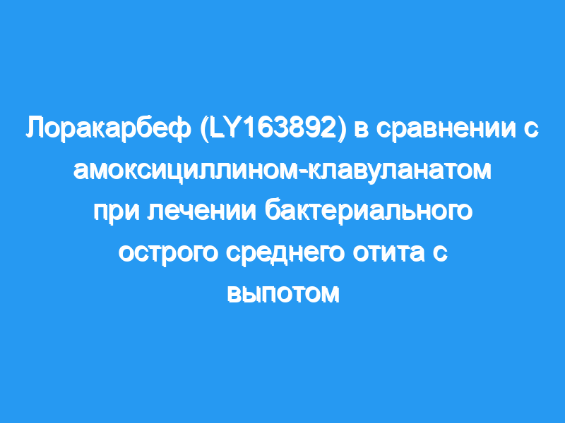 Эффективность и безопасность лоракарбефа, нового бета-лактамного антибиотика, сравнивали с эффективностью амоксициллина-клавуланата калия при лечении бактериального острого среднего отита с выпотом.