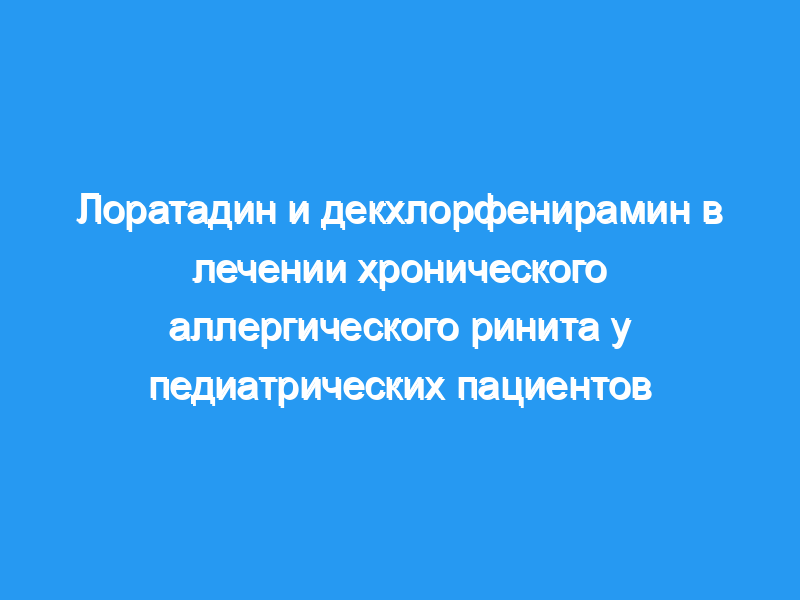 Применение лоратадина сравнивали с декхлорфенирамином при лечении детей, страдающих хроническим аллергическим ринитом, с целью оценки его клинической эффективности и переносимости.
