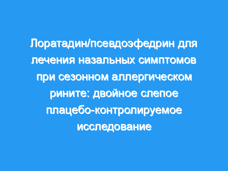 В этом двойном слепом плацебо-контролируемом перекрестном параллельном исследовании мы лечили 20 взрослых с сезонным аллергическим ринитом фиксированной комбинацией лоратадина/псевдоэфедрина сульфата один раз в день, чтобы наблюдать ее влияние на облегчение симптомов, в первую очередь заложенности носа.