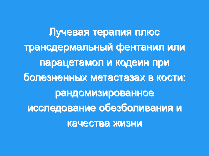 Трансдермальный фентанил в сочетании с R/T был более эффективен в уменьшении метастатической боли в костях и привел к большему улучшению качества жизни, чем парацетамол и кодеин.