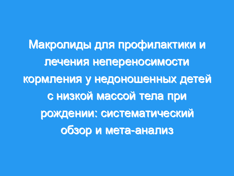 Роль макролидов в профилактике и лечении непереносимости кормления (FI) у недоношенных детей с низкой массой тела при рождении (LBW) недостаточно изучена. Оценить эффективность и безопасность макролидов для профилактики или лечения ФИ у недоношенных детей с ВБ. Систематический обзор и мета-анализ (идентификатор PROSPERO: CRD42020170519) были проведены для статей на английском языке, опубликованных с момента создания до марта 2020 года, с использованием MEDLINE, EMBASE и Cochrane Controlled Trials Register. Поисковые запросы включали недоношенных детей с низкой массой тела при рождении, макролиды, эритромицин, азитромицин, кларитромицин и непереносимость кормления. Были включены рандомизированные контролируемые исследования (РКИ), оценивающие влияние терапии макролидами на время достижения полного энтерального питания (FEF, 150 мл/кг/сут), продолжительность парентерального питания (PN), госпитализацию и нежелательные явления у недоношенных детей с LBW. Независимое извлечение данных было выполнено обоими авторами с использованием предопределенной таблицы данных. Данные от очень низкого до низкого качества из 21 РКИ, 19 для эритромицина (профилактика-6, спасение-13) и 2 для кларитромицина (профилактика-1, спасение-1) продемонстрировали значительную благоприятную роль эритромицина для более раннего ФЭФ, как в качестве профилактики (SMD-0,53, 95% ДИ — 0,74,- 0,33, 6 исследований, n = 368), а также спасение (SMD-1,16, 95% ДИ — 1,88, — 0,44, 11 исследований, n = 664). Спасательная терапия также была полезна для значительного сокращения продолжительности ПН, госпитализации, случаев сепсиса, некротического энтероколита и холестаза. Никаких сообщений об аритмии или детском гипертрофическом стенозе привратника не поступало.