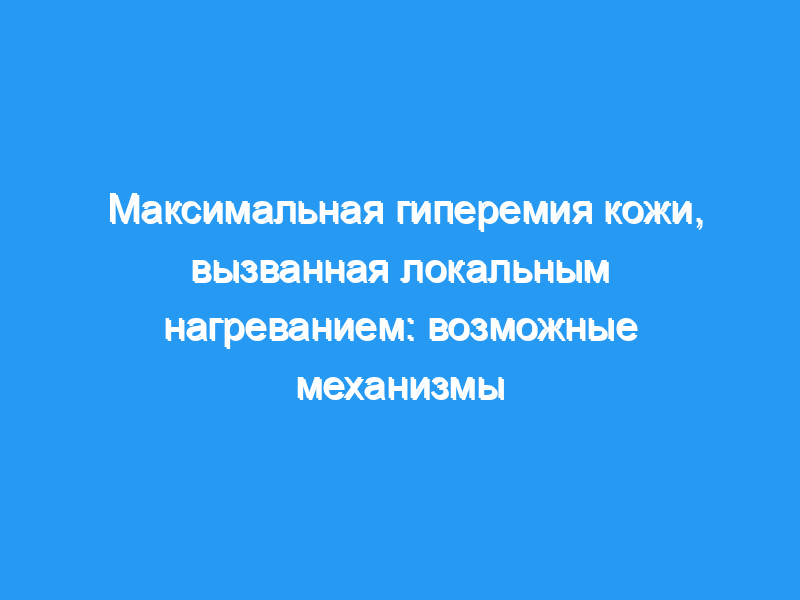 Максимальная гиперемия кожи (MH), вызванная нагреванием кожи до >, или = 42 °C, нарушается у лиц с риском развития диабета и сердечно-сосудистых заболеваний. Интерпретация этих результатов затруднена из-за отсутствия ясности механизмов, участвующих в достижении MH.
