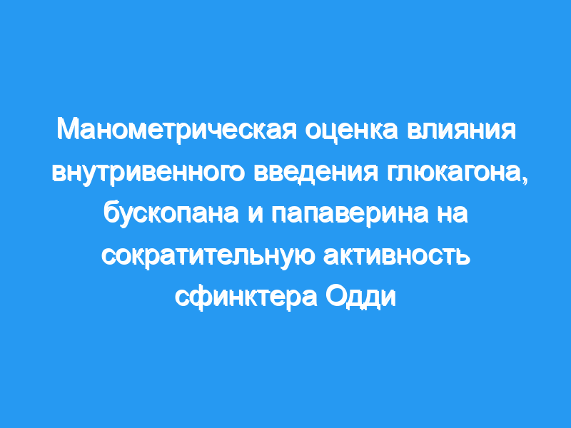 Для исследования влияния спазмолитических препаратов на сфинктер мотилита Одди (s.O.) использовали эндоскопическую манометрическую методику.