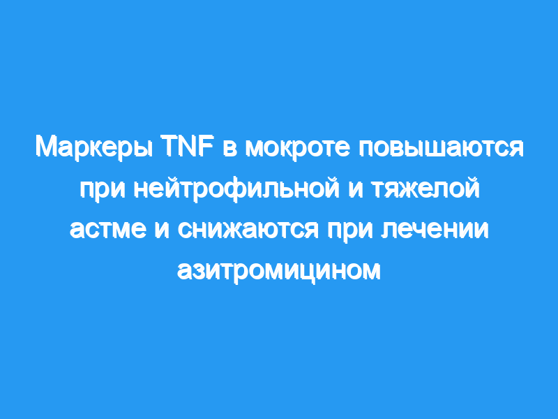 Исходные уровни TNFR1 и TNFR2 в мокроте были значительно повышены при нейтрофильном и ненейтрофильном фенотипах астмы, в то время как сывороточные маркеры не различались. Уровни TNFR1 и TNFR2 в мокроте были повышены при тяжелой астме и коррелировали с ухудшением функции легких, ухудшением контроля астмы и увеличением возраста. Сывороточный TNFR1 также повышался при тяжелой астме. Уровень TNFR2 в мокроте и сыворотке крови был повышен при частых обострениях. Лечение азитромицином значительно снижало уровень TNFR2 и TNF в мокроте по сравнению с плацебо, особенно у неэозинофильных участников.