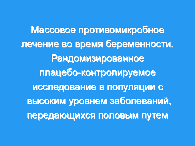 Чтобы изучить потенциальные преимущества рутинной противомикробной терапии для исхода беременности, мы провели рандомизированное двойное слепое клиническое исследование в одной из женских консультаций в Найроби, Кения.