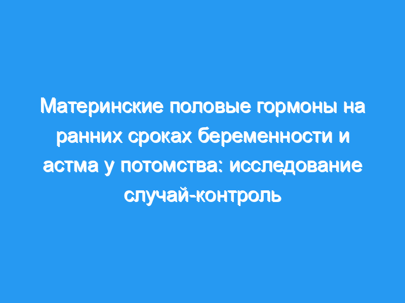 Изучить связь между концентрацией половых гормонов матери на ранних сроках беременности и риском развития астмы у потомства.