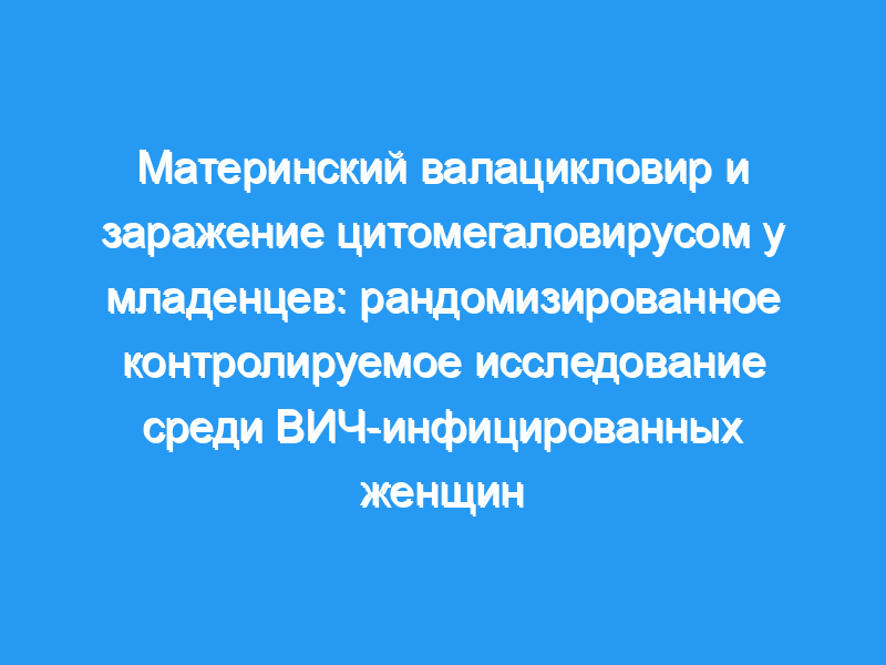В этой когорте ВИЧ-1-серопозитивных матерей две трети младенцев заразились ЦМВ к одному году. Валацикловир матери не оказывал влияния на сроки заражения ЦМВ у младенцев или вирусную нагрузку ЦМВ в грудном молоке, хотя он незначительно снижал выделение ЦМВ из шейки матки. Материнская профилактика, направленная на снижение заражения ЦМВ у младенцев, требует дальнейшей оценки в ходе испытаний с использованием противовирусных препаратов. Регистрация испытаний: ClinicalTrials.gov NCT00530777.