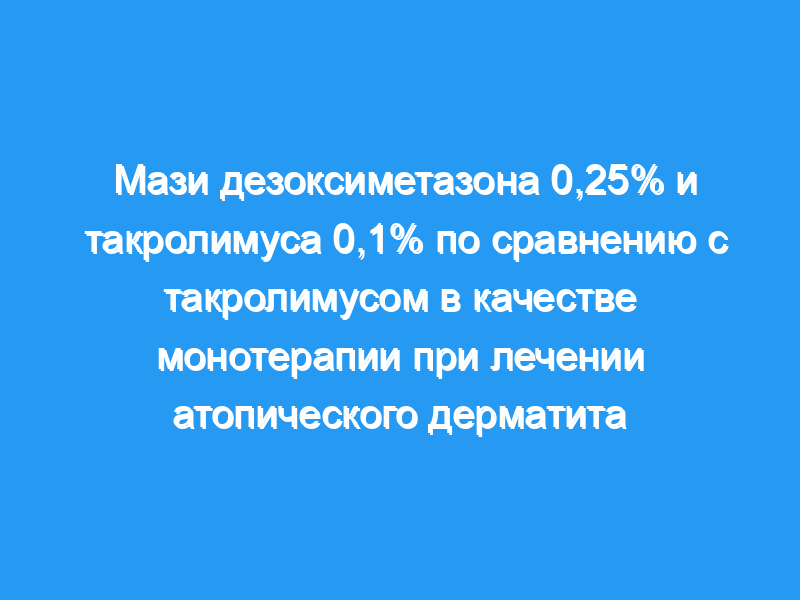 Мы стремились оценить эффективность одновременного применения дезоксиметазона и такролимуса два раза в день при лечении атопического дерматита по сравнению с монотерапией такролимусом.