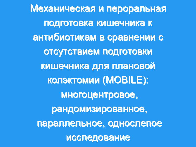 Сообщалось о снижении инфекций в месте операции (SSIs) и заболеваемости при механической и пероральной подготовке кишечника антибиотиками (MOABP) по сравнению с отсутствием подготовки кишечника (NBP) в хирургии толстой кишки. На основании этих данных несколько обществ рекомендовали рутинное применение MOABP у пациентов, перенесших резекцию толстой кишки. Наша цель состояла в том, чтобы изучить эту рекомендацию в проспективном рандомизированном контексте.