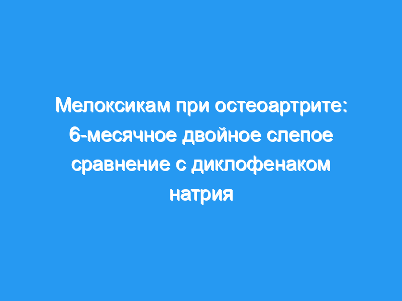 Многоцентровое двойное слепое рандомизированное исследование было проведено у пациентов с остеоартритом (ОА) тазобедренного или коленного сустава с целью сравнения эффективности и безопасности нового ингибитора циклооксигеназы-2 (ЦОГ-2), мелоксикама, с диклофенаком натрия, традиционным средством для лечения этого состояния.