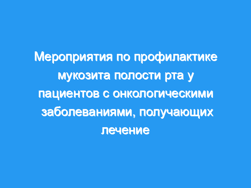 в: Было обнаружено, что некоторые из вмешательств имеют определенную пользу в предотвращении или уменьшении тяжести мукозита, связанного с лечением рака. Сила доказательств была различной, и последствия для практики включают в себя рассмотрение того, что преимущества могут быть специфичными для определенных типов рака и лечения. Существует необходимость в хорошо спланированных и проведенных исследованиях с достаточным количеством участников для проведения анализа подгрупп по типу заболевания и химиотерапевтическому агенту.