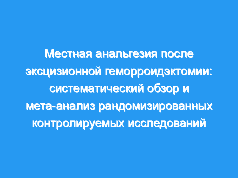 Послеоперационная боль после эксцизионной геморроидэктомии представляет особую проблему для выздоровления пациента, а также является бременем для больничных ресурсов. По-видимому, возрастает роль местных средств для облегчения этой боли, но их эффективность и безопасность не были полностью оценены. Целью этого систематического обзора является оценка всех местных средств, используемых для обезболивания после эксцизионной геморроидэктомии.
