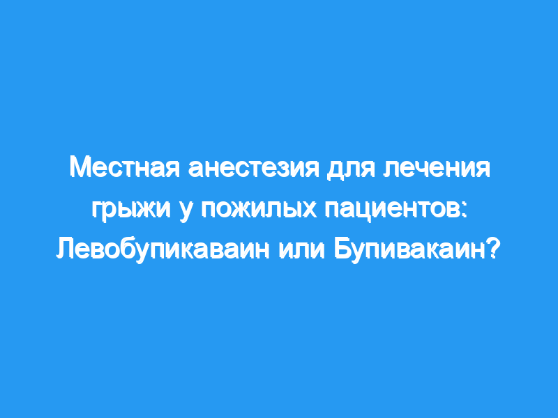 Клиническая эффективность левобупивакаина и рацемического бупивакаина фактически одинакова при использовании при местном вмешательстве паховой герниопластики. В области амбулаторной хирургии наша рабочая группа предпочитает левобупивакаин из-за его меньшего количества побочных эффектов и простоты в обращении.