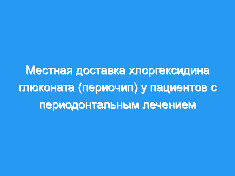 Целью этого рандомизированного однократного слепого исследования с разделенным ртом было определение эффективности доставки 2,5 мг хлоргексидина глюконата с контролируемым высвобождением (PerioChip) у пациентов с остаточными очагами кровотечения (>5 мм) по крайней мере через 3 месяца после гигиены полости рта и лечения на этапе обработки корней..