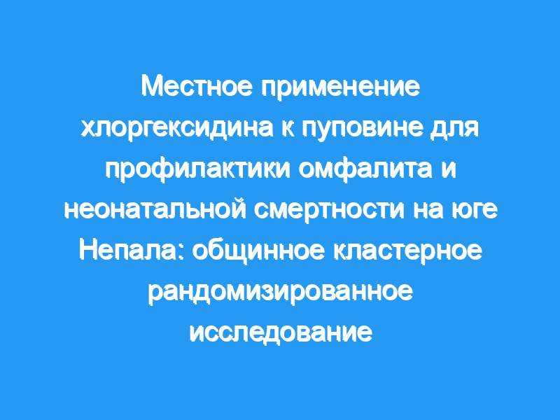 В нашем общинном кластерном рандомизированном исследовании 413 общин в Сарлахи, Непал, были случайным образом распределены на один из трех режимов ухода за пуповиной. 4934 младенцам был назначен 4,0% хлоргексидин, 5107 — мытье с мылом и водой и 5082 — сухой уход за пуповиной.. В группах вмешательства пуповину новорожденного очищали в домашних условиях на 1-4, 6, 8 и 10-й дни. Во всех группах пуповину исследовали на наличие признаков инфекции (гной, покраснение или припухлость) во время этих посещений и при последующих посещениях на 12, 14, 21 и 28-й дни. Заболеваемость омфалитом определялась по трем алгоритмам, основанным на признаках, с увеличением степени тяжести. Жизненный статус младенца регистрировался в течение 28 завершенных дней. Первичными исходами были частота неонатального омфалита и неонатальная смертность. Анализ проводился по принципу «намерение лечить». Эта пробная версия зарегистрирована под номером NCT00109616. Результаты: Частота омфалита по всем трем определениям была значительно снижена в группе хлоргексидина. Тяжелый омфалит в кластерах с хлоргексидином был снижен на 75% (коэффициент заболеваемости 0,25, 95% ДИ 0,12-0,53, 13 инфекций/4839 неонатальных периодов) по сравнению с кластерами с сухим уходом за пуповиной (52/4930). Неонатальная смертность была на 24% ниже в группе хлоргексидина (относительный риск 0,76 [95% ДИ 0,55-1,04]), чем в группе сухого ухода за пуповиной. У младенцев, зачисленных в течение первых 24 часов, смертность была значительно снижена на 34% в группе хлоргексидина (0,66 [0,46-0,95]). Мыло и вода не снижали риск заражения или смертности. Интерпретация: Рекомендации по уходу за сухой пуповиной должны быть пересмотрены на основе этих выводов о том, что ранняя антисептика пуповины хлоргексидином снижает местные инфекции пуповины и общую неонатальную смертность.