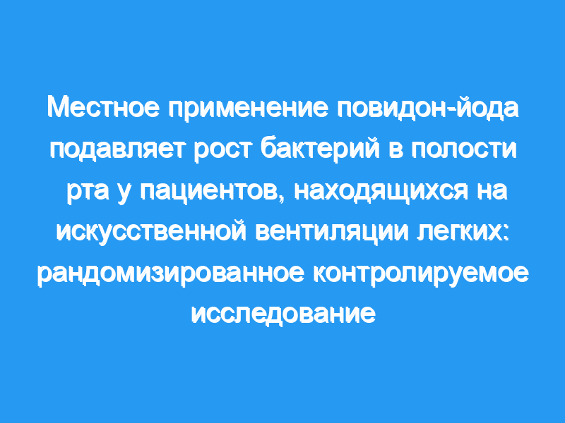 Местное применение повидон-йода после очистки и орошения полости рта подавляло рост бактерий в ротоглотке у пациентов, находящихся на искусственной вентиляции легких, не нарушая при этом баланс микробиоты полости рта. Регистрация испытаний: Реестр клинических испытаний Медицинской информационной сети Университетских больниц (UMIN-CTR), UMIN000028307. Зарегистрирован 1 сентября 2017 года.