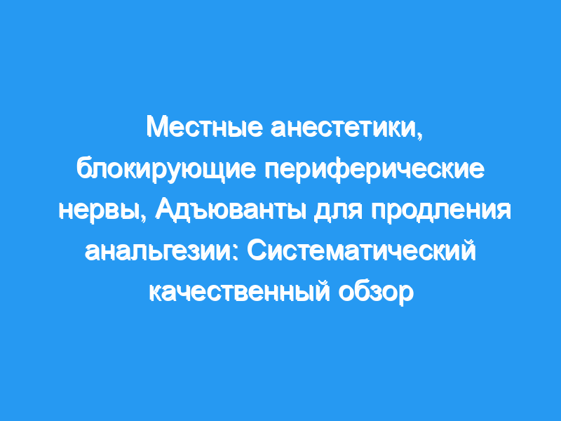 Систематически проводить обзор рандомизированных контролируемых исследований и метаанализов, связанных с адъювантами, и предоставлять клинические рекомендации по использованию адъювантов при блокадах периферических нервов.