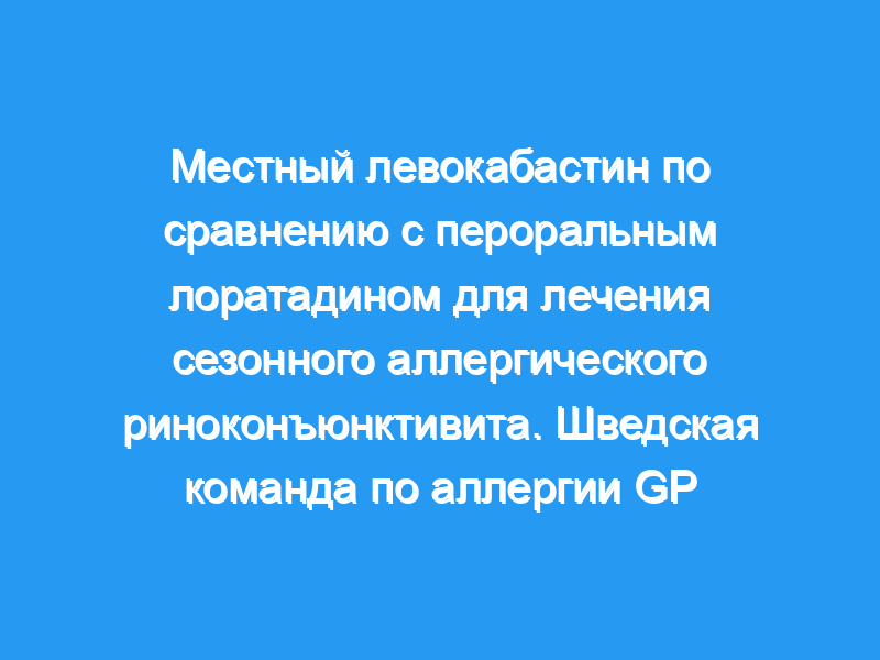 В заключение, глазные капли левокабастина и назальный спрей, по-видимому, столь же эффективны и хорошо переносится в виде перорального приема лоратадина для лечения сезонного аллергического риноконъюнктивита.