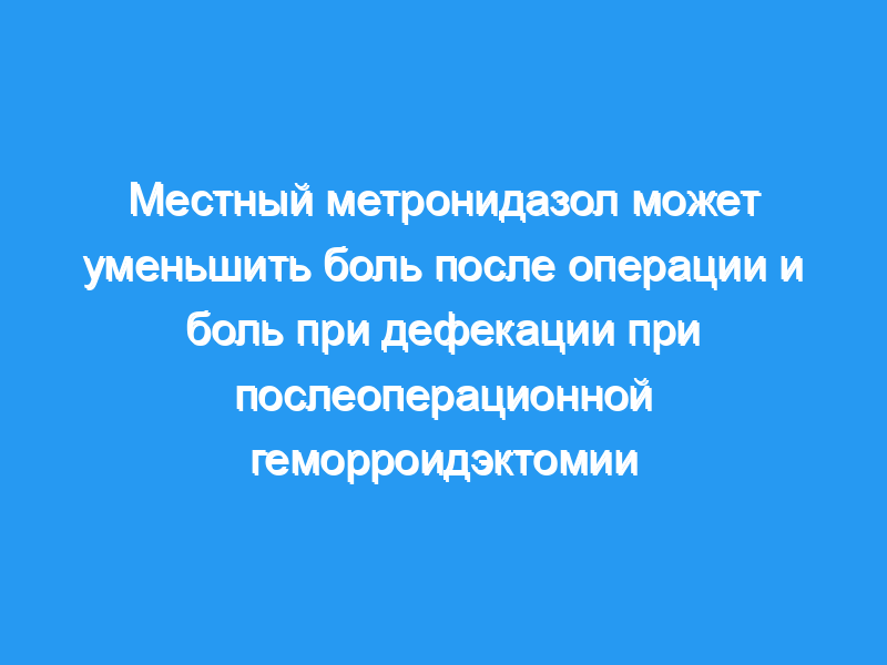 Эти данные указывают на то, что местный 10-процентный метронидазол значительно снижает дискомфорт после геморроидэктомии и боль при послеоперационной дефекации уменьшаются по сравнению с контрольной группой, получавшей плацебо.