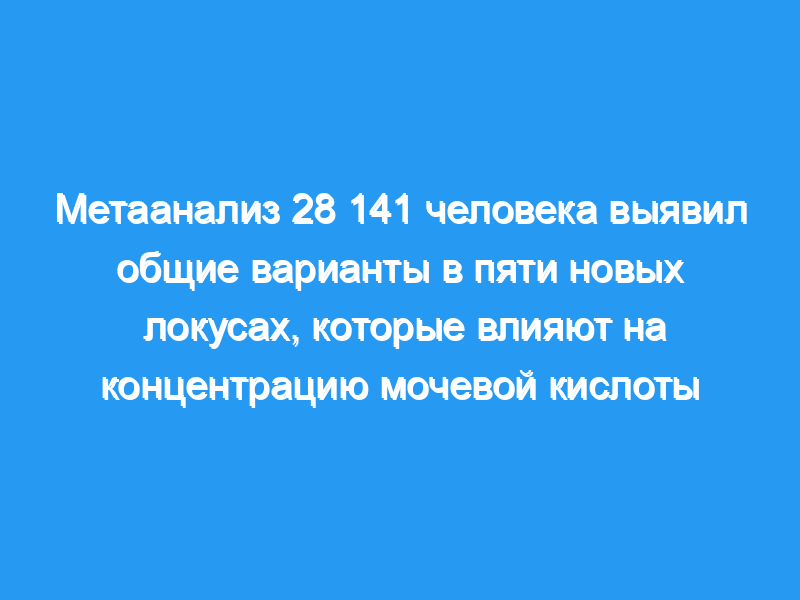 Взятые вместе, эти ассоциации выделяют дополнительные пути, которые важны для регуляции уровня мочевой кислоты в сыворотке крови и указывают на новые потенциальные мишени для фармакологическое вмешательство для профилактики или лечения гиперурикемии.