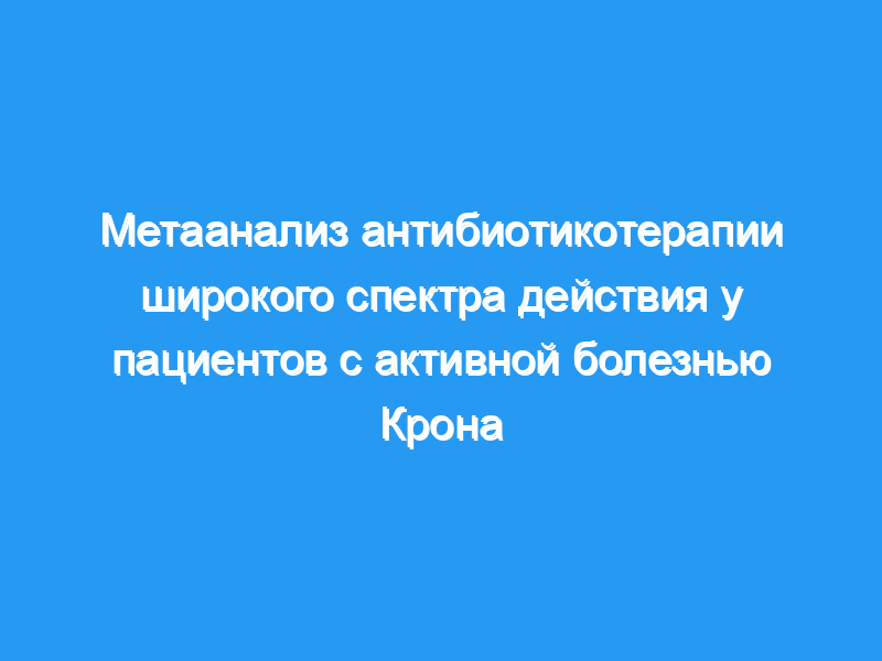 Этот мета-анализ контролируемых клинических испытаний был проведен для оценки того, связано ли использование антибактериальной терапии широкого спектра действия с улучшением клинических симптомов болезни Крона (БК).