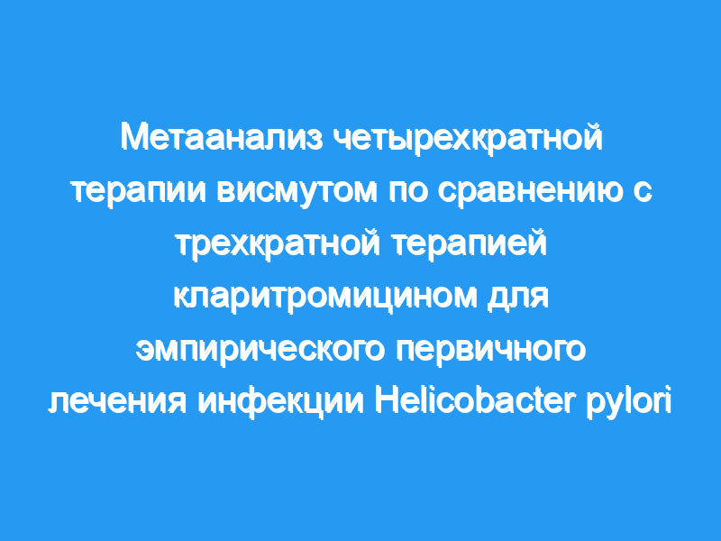 Рандомизированные клинические исследования (РКИ), сравнивающие BQT с CTT, были определены с помощью электронного и ручного поиска. Был проведен мета-анализ для сравнения эффективности и переносимости этих двух схем в качестве первой линии лечения инфекции H. pylori. Также было проанализировано влияние устойчивости к антибиотикам на эффективность лечения.