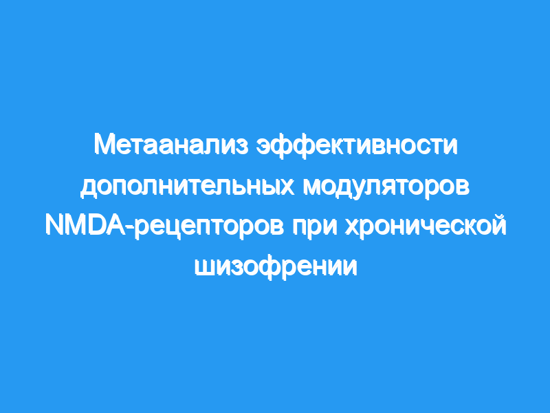 Целью данного мета-анализа была оценка потенциала модуляторов рецептора NMDA в качестве дополнительной терапии шизофрении с использованием результатов опубликованных исследований. Источники данных: Первичный электронный поиск контролируемых клинических испытаний с использованием NMDARMs при шизофрении был проведен в базах данных PubMed, Cochrane Library, EMBASE, CINAHL® и PsycINFO. Также был выполнен вторичный ручной поиск ссылок из первичных публикаций. Выбор исследования: Критериями включения были применение установленного метода диагностики, рандомизированное распределение случаев, сравнение дополнительной терапии NMDARM с плацебо и двойная слепая оценка симптомов хронической шизофрении с использованием стандартизированных рейтинговых шкал. Результаты были основаны на общем объеме выборки из 1253 случаев из 29 исследований, которые соответствовали указанным критериям. Извлечение данных: Оценки по рейтинговым шкалам или по их соответствующим подшкалам были получены для всех выбранных исследований из опубликованных результатов для минимального набора данных для вычисления разницы между оценками после и до исследования и их объединенным стандартным отклонением для групп дополнительной терапии NMDARM и плацебо для отрицательных, положительных и общих симптомов.