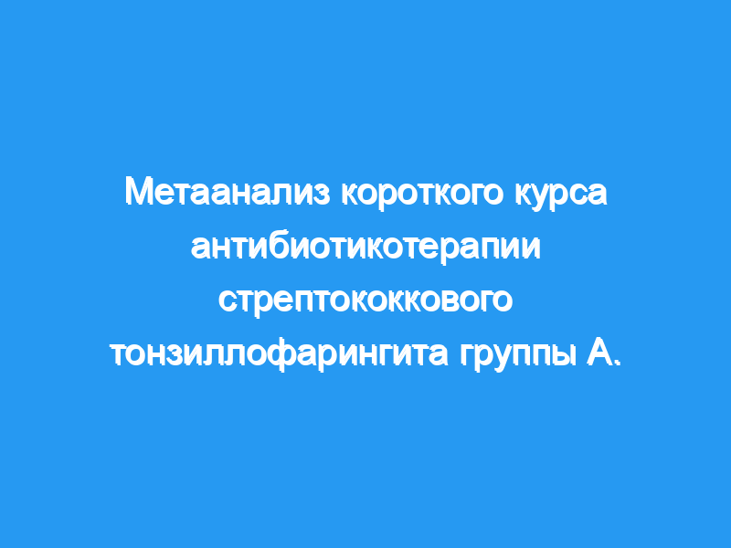 Для определения доступных публикаций использовались Medline, Embase, списки литературы и поиск по аннотациям. Испытания включались при наличии бактериологического подтверждения ГАЗОВОГО тонзиллофарингита, случайном назначении антибиотикотерапии бета-лактамным или макролидным антибиотиком сокращенного курса по сравнению с 10-дневным аналогом и оценке бактериологического исхода с использованием культуры горла.