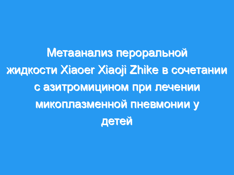 Систематическая оценка эффективности и безопасности пероральной жидкости Xiaoer Xiaoji Zhike в сочетании с азитромицином при лечении микоплазменной пневмонии у детей.