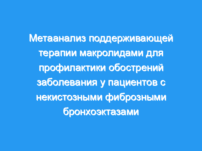 Поддерживающее лечение макролидами остается спорным для пациентов с бронхоэктазами без муковисцидоза (не-CF). Мы провели мета-анализ, чтобы оценить преимущества и безопасность терапии макролидами у взрослых и детей с бронхоэктазами без CF.