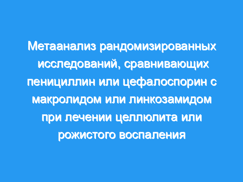 Мы провели мета-анализ опубликованных исследований, в которых пациенты с целлюлитом или рожистым воспалением были рандомизированы для лечения либо бета-лактамом, либо макролидом или линкозамидом. Мы искали в PUBMED, EMBASE, MEDLINE и SCOPUS (до марта 2014 года), используя термины: целлюлит / рожистое воспаление, пенициллин / бета-лактам, макролид / линкозамид, случайное * / контролируемое * / исследование* в качестве ключевых слов. Мы включили рандомизированные исследования, в которых сравнивалась монотерапия бета-лактамом с монотерапией макролидом или линкозамидом при лечении целлюлита или рожистого воспаления.