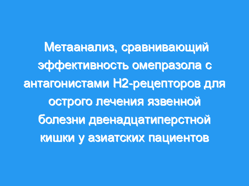 Был проведен мета-анализ объединенных данных пяти крупных двойных слепых исследований (в общей сложности 1057 пациентов), которые были проведены в Азии для сравнения эффектов омепразола и антагонистов Н2-рецепторов (Н2-РА) при язве двенадцатиперстной кишки.