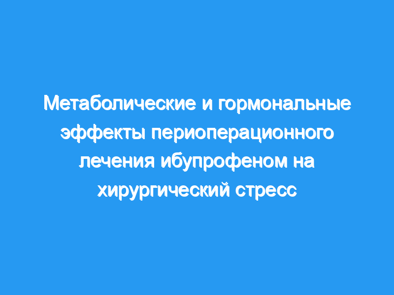 Хирургический стресс вызывает гормональные и цитокиновые реакции, пропорциональные степени повреждения. Периоперационное введение ингибиторов циклооксигеназы снижает выработку цитокинов и потери азота. Целью данного исследования является клиническая оценка метаболических и гормональных эффектов ибупрофена, который является ингибитором циклооксигеназы, на хирургический стресс.