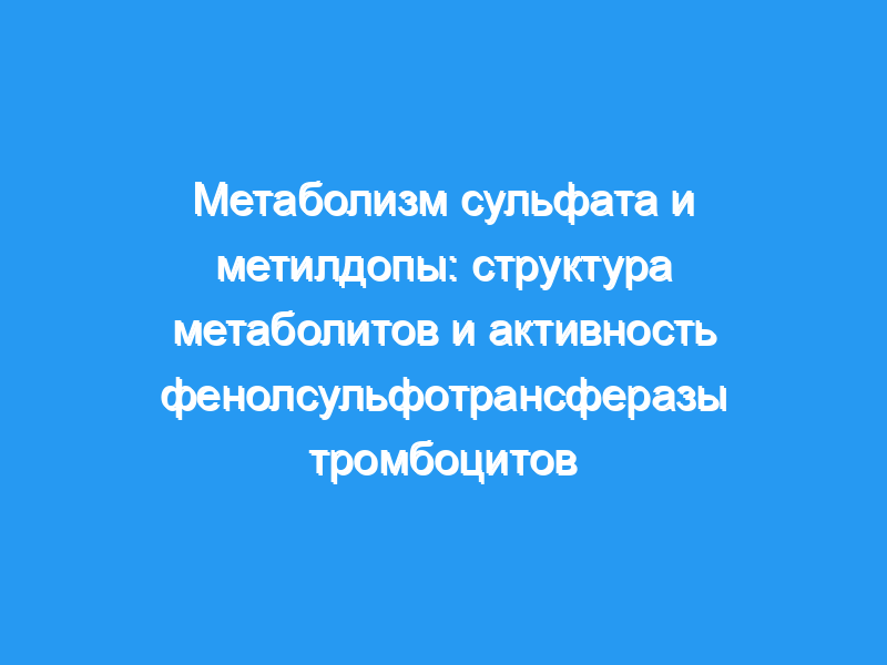 При приеме сульфата натрия с метилдопой наблюдалась значительная корреляция между активностью PST тромбоцитов и процентным содержанием метаболитов, выделяемых в виде сульфата метилдопы (r = 0,545, P менее 0,01). Эта корреляция не была значимой, когда метилдопа принималась отдельно (r = -0,340, P более 0,10). Наблюдалась значительная корреляция между активностью COMT эритроцитов и долей метаболитов, выделяемых с мочой в виде 3-О-метил-альфа-метилдопы, когда метилдопа принималась отдельно (r = 0,532, P менее 0,01), но не при приеме с сульфатом натрия (r = 0,153, P больше, чем 0.20). Наши данные подтверждают вывод о том, что различия в доступности сульфатов могут быть одним из факторов, ответственных за индивидуальные различия в метаболизме клинически используемых доз метилдопы.(АННОТАЦИЯ СОКРАЩЕНА ДО 250 СЛОВ).