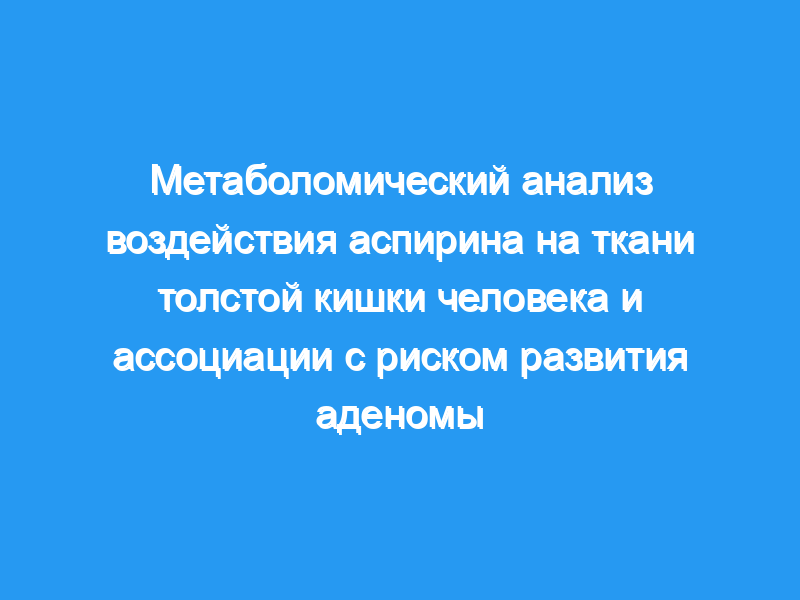 Для выяснения метаболических эффектов лечения аспирином в тканях толстой кишки человека был использован нецелевой метаболомический подход с масс-спектрометрией высокого разрешения.