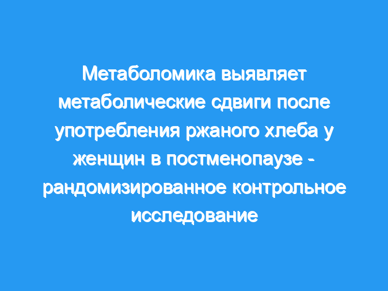 Это исследование выявило благоприятные сдвиги в метаболизме разветвленных аминокислот и одноуглеродов и неблагоприятные сдвиги в уровнях холестерина в сыворотке крови после приема RB у женщин в постменопаузе, что должно следует учитывать при оценке полезного воздействия ржаных продуктов на здоровье.