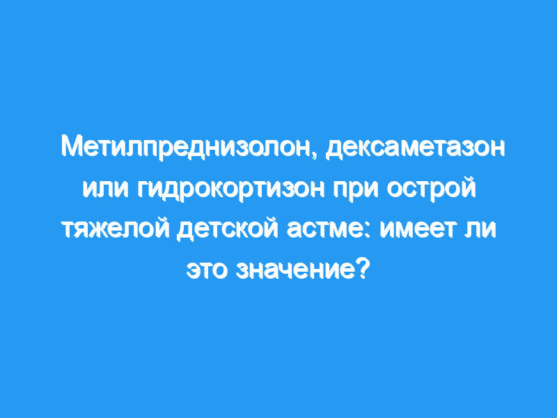Для лечения острой тяжелой астмы (АСК) доступны различные внутривенные (в/в) кортикостероиды. Выбор внутривенных кортикостероидов широко варьируется и зависит от учреждения, страны или предпочтений врача. В этом исследовании мы сравнили эффективность внутривенного введения метилпреднизолона, гидрокортизона и дексаметазона при лечении АСК во время поступления в детское отделение интенсивной терапии (PICU).