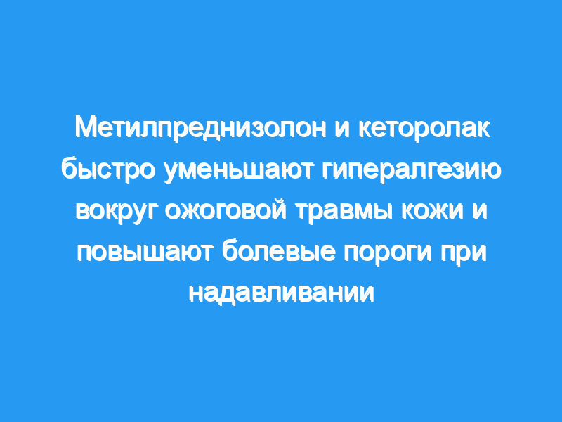 Глюкокортикоиды и нестероидные противовоспалительные препараты (НПВП) уменьшают острую послеоперационную боль и гипералгезию. Целью этого исследования было изучение влияния метилпреднизолона и кеторолака на гипералгезию вокруг ожоговой травмы кожи и на болевые пороги при надавливании.