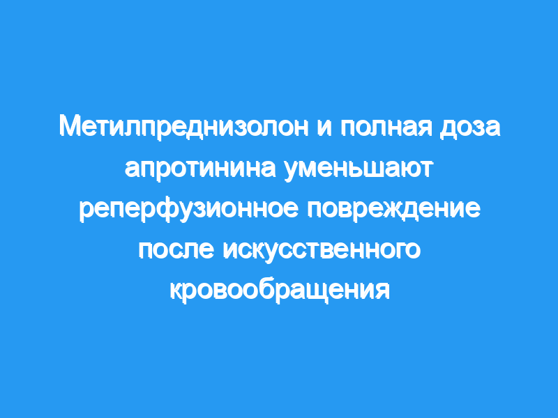 Лаборатория цитокинов, отделение фармакологии, в университетской учебной больнице. Участники: Сорок взрослых пациентов мужского пола, которым была запланирована реваскуляризация миокарда, были разделены на четыре группы (n = 10): (1) контрольная, (2) MPS, 1 г внутривенно перед CPB, (3) протокол с низкой дозой апротинина и (4) протокол с полной дозой апротинина. Измерения и основные результаты: Уровни IL-6 в плазме крови измеряли в исходном состоянии и через 1 и 24 часа после CPB методом иммуноферментного анализа. Группа 1 продемонстрировала значительное (p <, 0,05) повышение уровня IL-6 через 1 и 24 часа после CPB. Группы 2 и 4 продемонстрировали значительное (p <, 0,05) снижение уровня IL-6 через 1 (только группа 2) и 24 (группы 2 и 4) часа после CPB по сравнению с группой 1 в те же периоды времени.